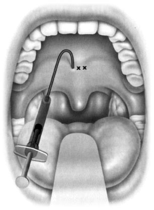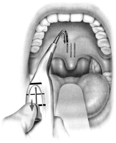 Zabieg polega na umieszczeniu w obrębie podniebienia miękkiego kilku
